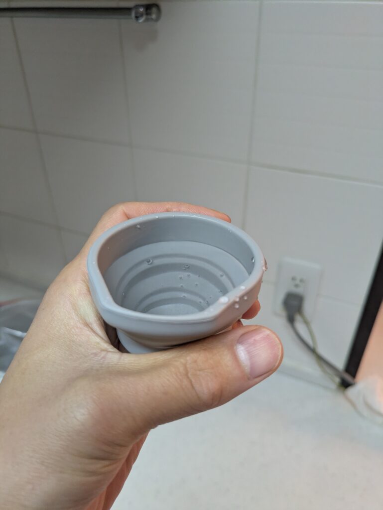 行き着いた答えは、100円ショップで手に入る「折りたたみ式シリコンカップ」でした。
