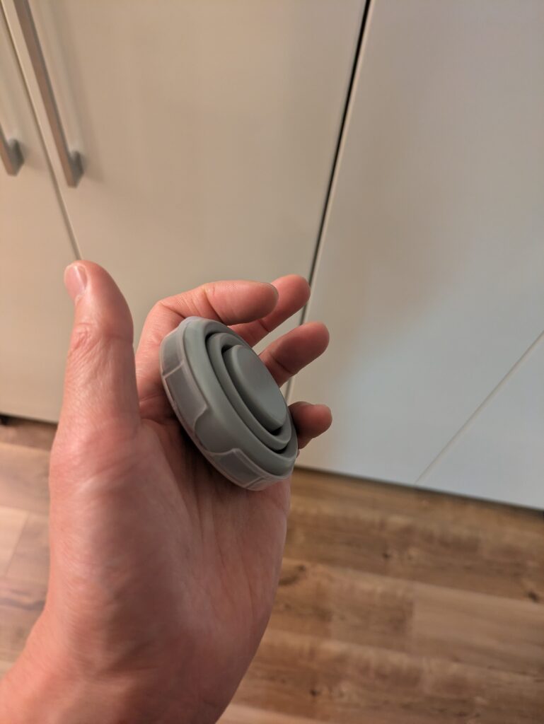 100円ショップで見つけたシリコンカップ。畳んでいる時はこんなにコンパクトです。