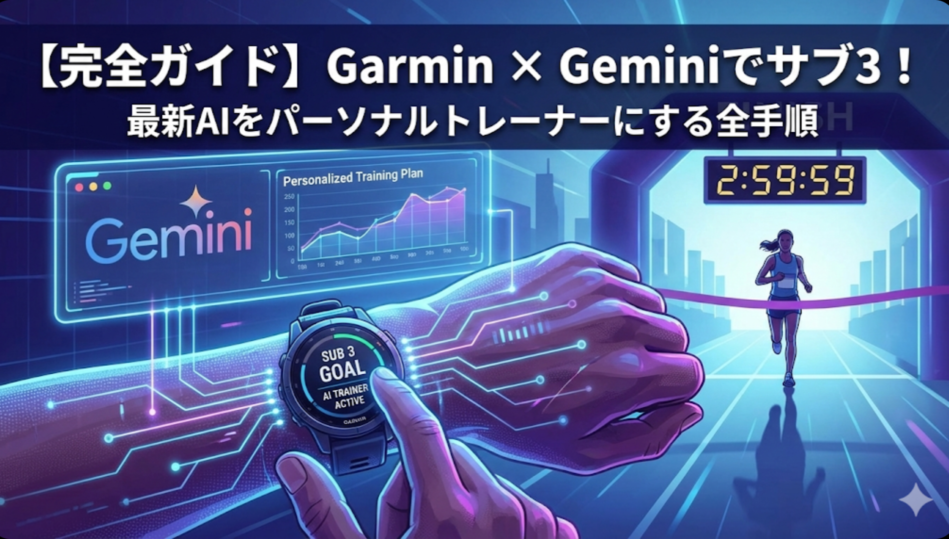 Garminの走行データとAI(Gemini)を組み合わせて、自分専用のパーソナルトレーナーを作る方法を全4回で詳しく解説しています。
